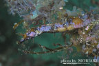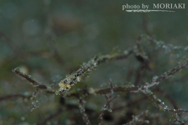 どこから見ても、とてもオサカナには見えません。 私に限ってですが、テングノオトシゴが泳いでいるところを見たことも無ければ捕食をしているところも見たことが無い。 神秘的なオサカナだ。 写真3枚とも同じ個体です。 中央の写真はTANAKAさんの写真。テングノオトシゴの右側に付いている棒のようなもの。 良く見かけるのですが何でしょうか。 ゴカイの仲間? 手のようなものでしっかりと掴めれているんですヨ。黒×白の感じが良い写真ですね。 右の写真はTATCHYさんの写真。テングノオトシゴのべったり感が良く出ていますね。こんな感じで動き回っています。